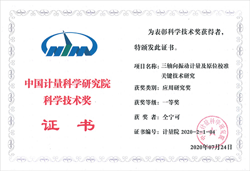 日前,中國計量科學(xué)研究院公布了2020年度科學(xué)技術(shù)獎獲獎項目的通知,由東菱公司總工程師仝寧可參與的《三軸向振動計量及原位校準(zhǔn)關(guān)鍵技術(shù)研究》項目榮獲中國計量科學(xué)研究院科學(xué)技術(shù)獎一等獎。