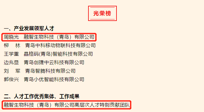 近日,山東省青島市城陽區人才工作領導小組辦公室公布了2020年城陽優秀人才、集體和工作成果入選名單,融智生物董事長周曉光入選該名單產業發展領軍人才獎項,同時融智生物入選該名單人才工作優秀集體、工作成果獎項。