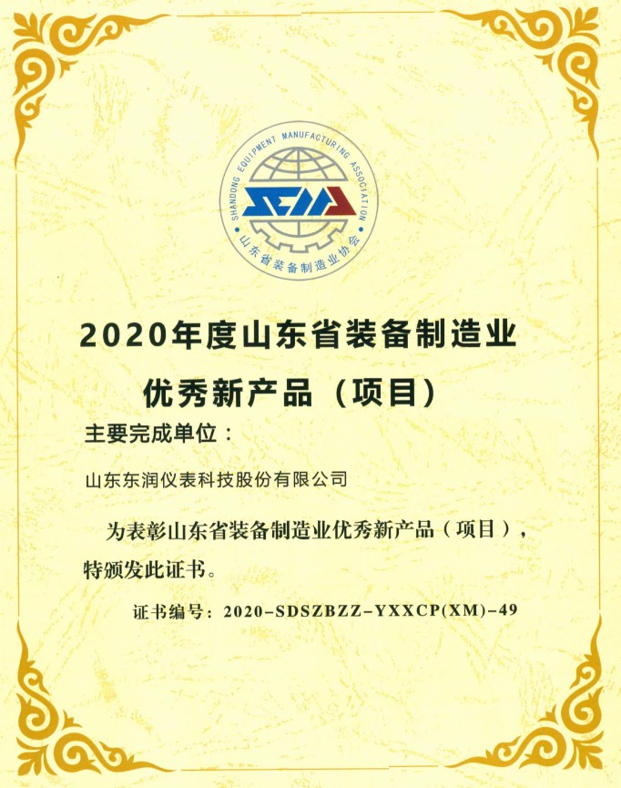 為鼓舞士氣,提振信心,樹立先進(jìn)標(biāo)桿,形成發(fā)展合力,加快推動(dòng)全省裝備制造業(yè)高質(zhì)量發(fā)展,山東省裝備制造業(yè)協(xié)會(huì)在濟(jì)南舉辦“2020 年度(首屆)山東省裝備制造業(yè)科技創(chuàng)新獎(jiǎng)?lì)C獎(jiǎng)大會(huì)暨科技賦能項(xiàng)目發(fā)布會(huì)”,山東東潤儀表科技股份有限公司榮獲“優(yōu)秀新產(chǎn)品獎(jiǎng)”,此次大會(huì)表彰獎(jiǎng)勵(lì)了全省裝備制造行業(yè)科技創(chuàng)新項(xiàng)目和先進(jìn)集體、先進(jìn)個(gè)人。