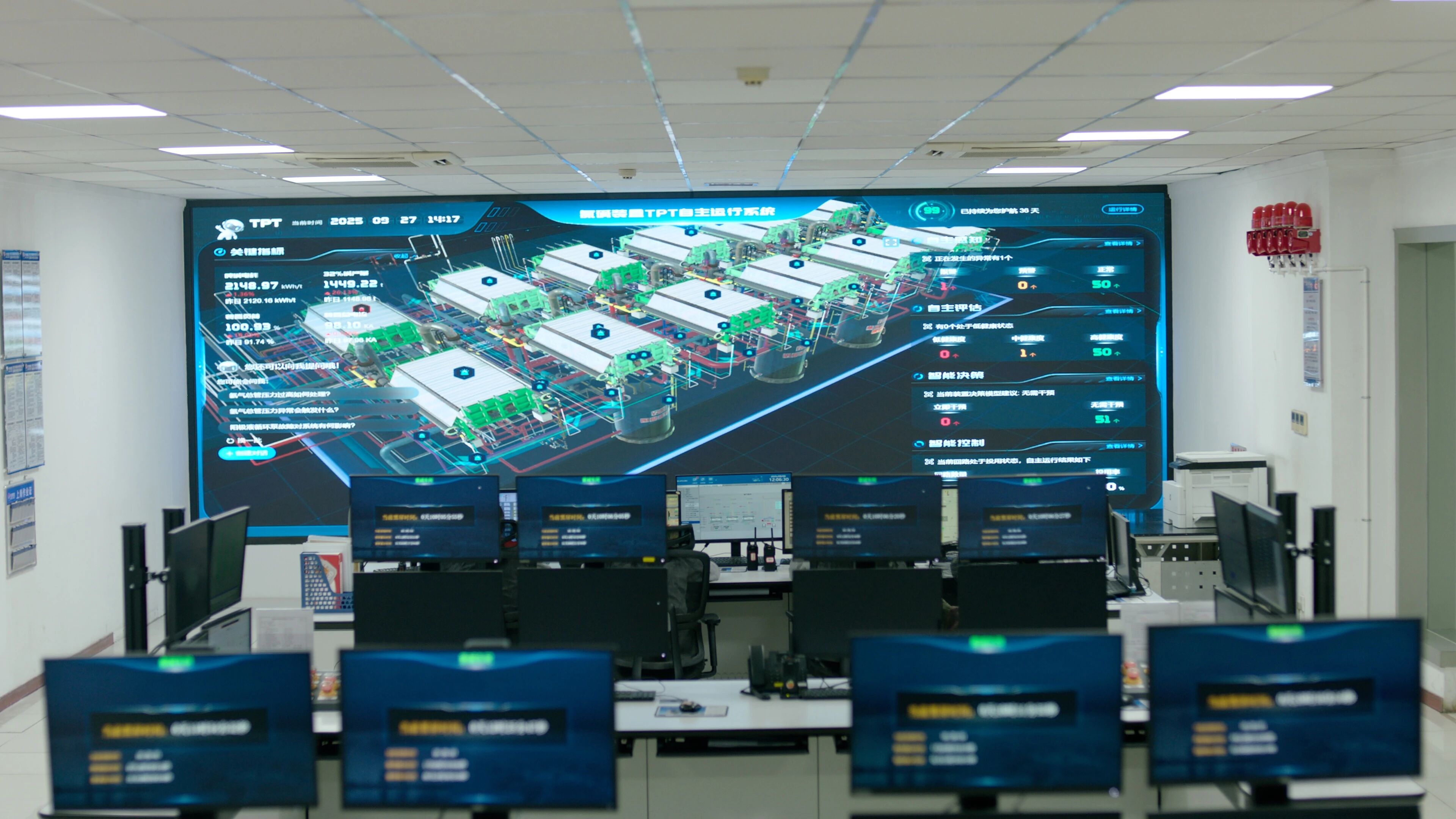 UCS系統(tǒng)作為FAP的“神經(jīng)中樞”和“物理手腳”,采用云原生與全光網(wǎng)絡(luò)架構(gòu)的創(chuàng)新設(shè)計(jì),徹底打破了傳統(tǒng)控制系統(tǒng)對(duì)特定硬件的依賴,實(shí)現(xiàn)了真正的“軟件定義控制”,其極簡(jiǎn)設(shè)計(jì)帶來顯著降本增效:機(jī)柜空間減少90%、電纜成本降低80%、項(xiàng)目建設(shè)周期縮短50%。在實(shí)際應(yīng)用中,UCS系統(tǒng)成功替代了原有的歐美控制系統(tǒng),將五套工藝生產(chǎn)裝置的幾十個(gè)控制機(jī)柜整合為一個(gè)統(tǒng)一的操作中心,總監(jiān)控點(diǎn)數(shù)突破15000點(diǎn),人均監(jiān)控I/O點(diǎn)從500點(diǎn)提升至2000點(diǎn),效能提升67%。值守工程師不再需要逐一監(jiān)控,系統(tǒng)能夠自動(dòng)識(shí)別工藝參數(shù)波動(dòng),及時(shí)作出調(diào)整,并在發(fā)現(xiàn)異常趨勢(shì)時(shí)主動(dòng)推送預(yù)警。