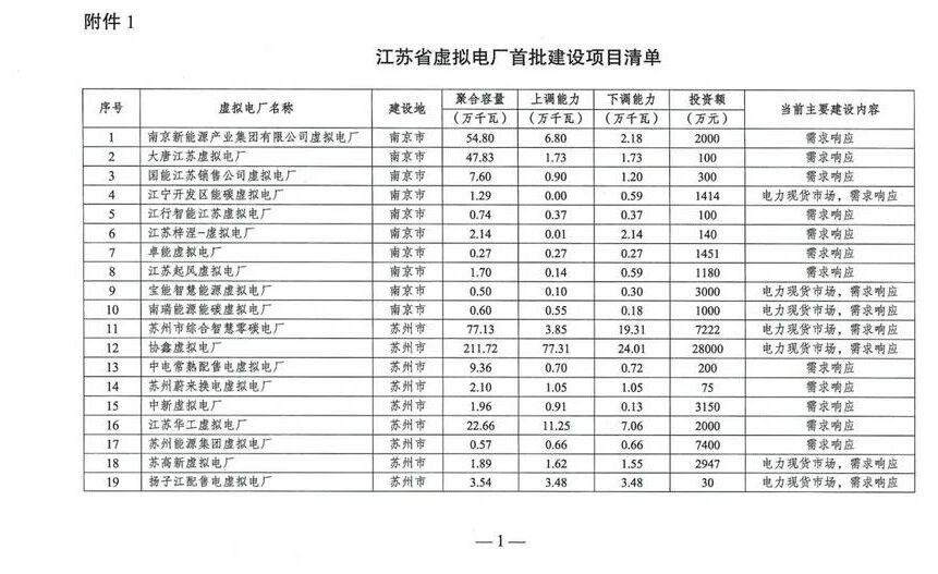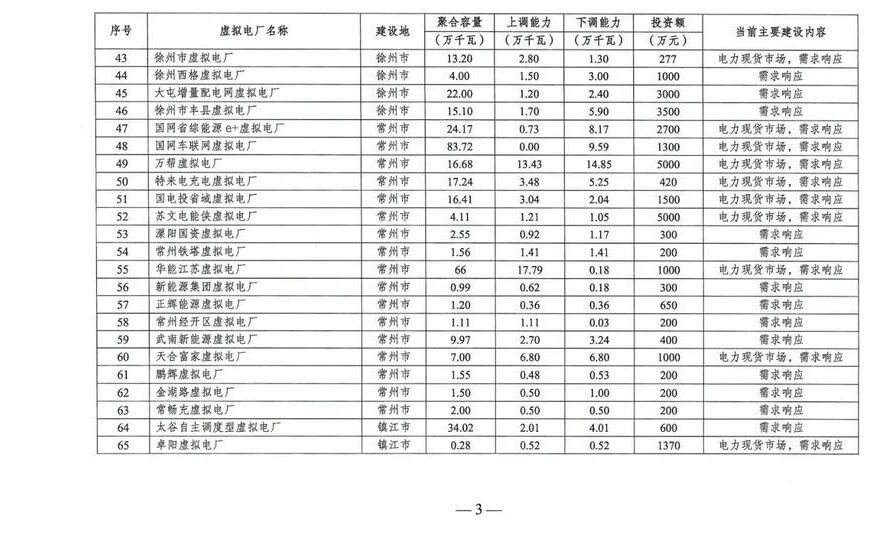 江蘇省虛擬電廠重點建設項目清單:100個項目,總投